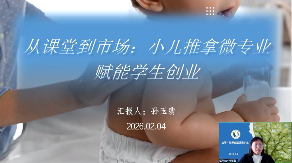 我校医学院护理基础教研室主任孙玉翡作题为《从课堂到市场:小儿推拿微专业赋能学生创业》的分享,该专业紧扣“健康中国”战略与市场刚需,破解助产学专业就业困境。依托校内实践基地,构建核心课程体系,创新差异性项目式教学,增设创业支持体系,形成“理论+实战+运营”培养模式。学生考证通过率大幅提升,涌现出“毕业即开店”的成功案例。专业还反哺主专业建设,形成“创业带动就业、就业反哺教学”的良性循环,为微专业建设提供了可借鉴的范本。