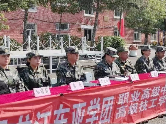 又讯 8月16日上午,东亚职业高中高级技工学校在学校操场召开2023级新生军训开营仪式。校党支部书记、常务副校长孙娱芯,副校长、综合办公室主任薛立峰,校长助理、教务处主任张丹,学生工作处主任陈占山、综合办公室主任助理秦爽、军训指导老师孙萌萌与军训教官参加开幕式,活动特邀j9在线教官团指导老师孙晓芳参加,学生工作处吴彦海老师主持。