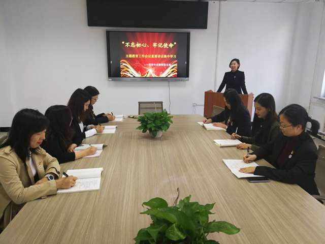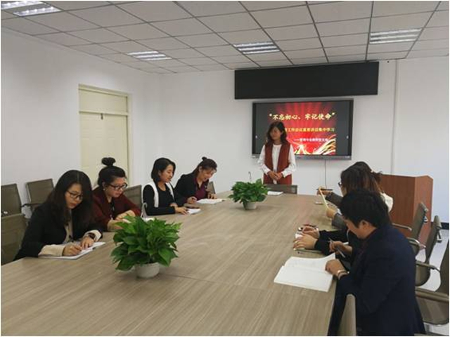 919日上午,英语专业教师党支部书记赵丹丹主持召开会议,向全体党员传达习近平总书记在“不忘初心、牢记使命”主题教育工作会议上的重要讲话精神、中央、省委、市委以及学院党委“不忘初心、牢记使命”主题教育部署会议精神,要求党员教师对照目标查找自身差距,努力提高课程思政能力,真正落实好育人工作。党员们纷纷表示,要深入学习习总书记讲话精神,积极参加主题教育,牢记教书育人初心和使命,找准差距、狠抓落实。