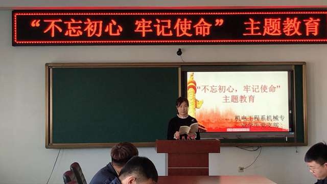 920日,计算机与电子专业教师党支部召开 “不忘初心,牢记使命”主题教育学习会,党支部书记吕双庆、支部宣传委员张蕊、组织委员张磊与7名教工党员参加。会上,支部书记吕双庆带学了习近平总书记在“不忘初心、牢记使命”主题教育工作会议上的讲话,深刻领悟“不忘初心、牢记使命”的含义,增强党员服务意识。