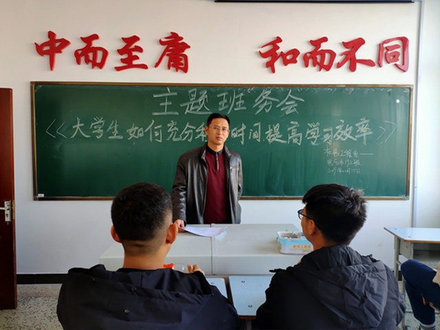 1114日,辅导员徐飞老师主持召开电气本192大学生如何充分利用时间提高学习效率主题班会。班级学习委员提出学习要有良好的计划性,这是提升学习效率的保证。有的同学介绍了自己是如何安排学习时间的,有的分享自己是如何课前预习、课后巩固知识的。徐飞老师综合同学们的发言,总结出安排好时间、课前先预习、充分利用课堂学习时间等提高学习效率的方法。