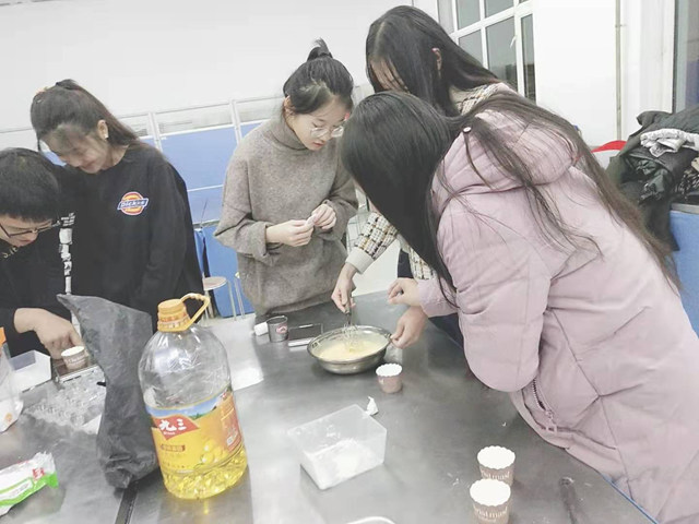 1120日晚,绿色新起点社团组织制作奶油蛋糕实践活动,13名社团成员参加。同学们分为两组,由指导教师和社团负责人带领,分别准备食品原料、清洗厨具、使用小称进行称量、制作奶油等。因为活动前社团负责人讲解过用电注意事项以及蛋糕烘烤前面糊的外观状态、奶油的打发程度等知识,此次制作中同学们互相探讨,踊跃动手,展现出对美食制作的浓厚兴趣。