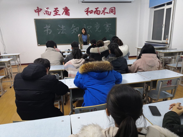 为检测同学们对书法知识的了解程度,进一步激发同学对书法的兴趣12月5日文学书法协会举办了书法知识竞赛。此次竞赛的题目不仅涉及古今书法历史知识,还涵盖了近现代书法大家及其代表作品知识,参赛同学积极抢答,现场氛围热烈。协会会长对各位同学的抢答成绩进行排名并颁发,在竞赛总结中鼓励同学们多了解书法知识,在课余坚持书法练习。