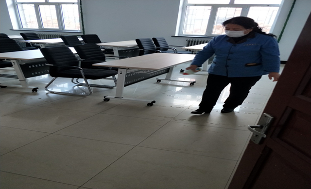 保持整洁卫生的公寓环境是防控疫情传播蔓延的关键一环。公寓辅导员在岗期间,不定时对公寓进行整体消毒,向地面喷洒含氯消毒液,清扫公寓公共卫生,保证公寓环境清新整洁卫生