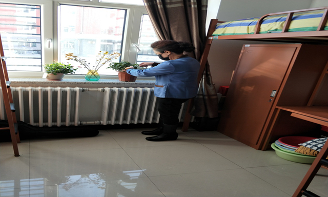 此次疫情发生,正值全校学生寒假离校返家期间公寓辅导员对学生公寓进行打扫消毒的同时,还贴心地为学生们浇花、虽然学生们放假不在学校,宿舍里仍一片生机盎然。