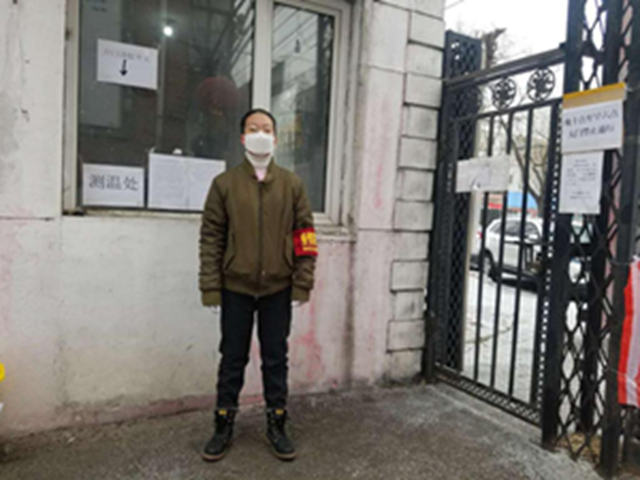 财务管专业173班刘晋彤同学家住牡丹江市的一个小区,当她得知社区疫情防控工作缺人手时,毅然报名加入社区的疫情防控志愿者队伍。在做好自保护的前提下,她在小区门口对出入居民进行登记,查验相关信息,测量体温做好详细记录,甘于为保障小区的疫情防控出一份力。