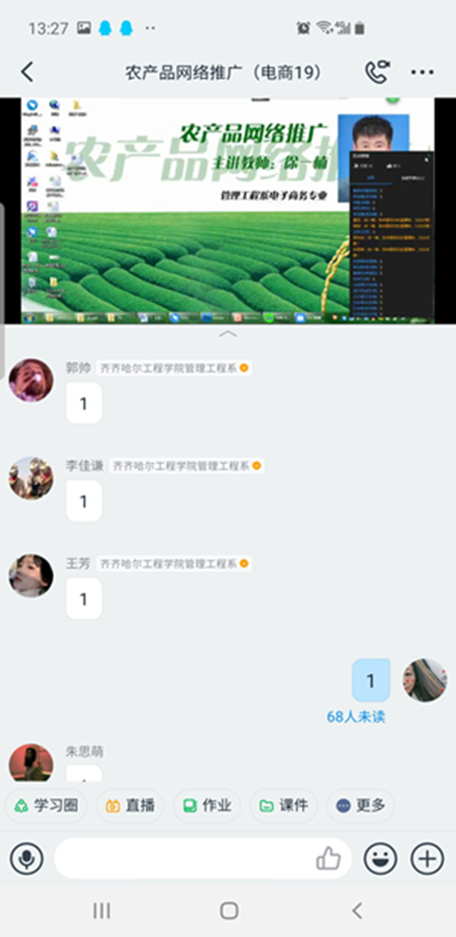 管理工程系辅导员结合线上教学实际,采取“特殊”跟班听课和查课方式,共同在线学习,实现教风建设与学风建设的相互促进,营造了疫情防控期间良好学习氛围,最大限度降低疫情对教学工作的影响。