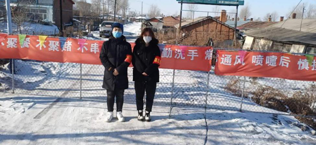 土木192班团员李珊在齐齐哈尔市克东县做疫情防控志愿者在小区卡点为居民登记测量体温,并发放居民通行证每天工作时间5个小时。