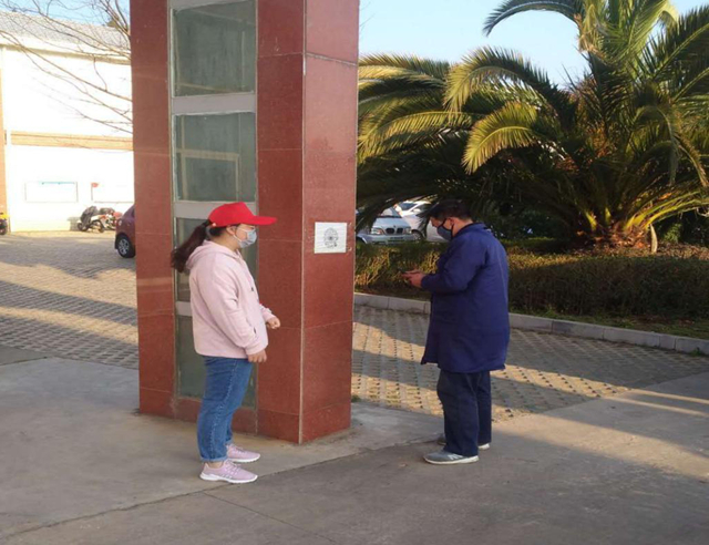 工管192班团员李广智在河北省黄骅市吕桥镇陈庄子村做疫情防控志愿者,参加入户走访登记并进行疫情排查。