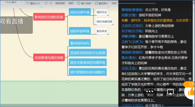 答疑课要精心设置好课程流程,明确各部分时间分配,要求学生记笔记、积极参加互动、连麦等。一是总结线上各项学习任务,树立典型。每周表彰学习表现优秀学生,颁发电子荣誉证书或者小红花等,通过伙伴教育促使学生总结学习规律。每周从不同角度发掘学习典型,如线上高分的、认真预习的、作业优秀、模范小组等,尽量让每个学生都“出彩”,提高学习积极性。二是将知识点穿线。知识点以思维导图的形式复习,相关理论巩固穿插经典而有趣的案例,多组织互动,提高学生学习兴趣。三是重视指导学生学习方法。教会学生高效率记录笔记,如使用康奈尔笔记记录法,体现以学生为中心;指导学生学会查找资料,选择权威的信息源,如知网研学平台,体现以学生发展为中心。四是课程思政讲求融入。结合知识点,适时自然地联系学生身边的实际,如通过阐述校园文化开展课程思政教育。