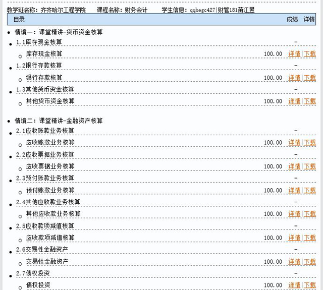 图5.学生完成的实训业务成绩