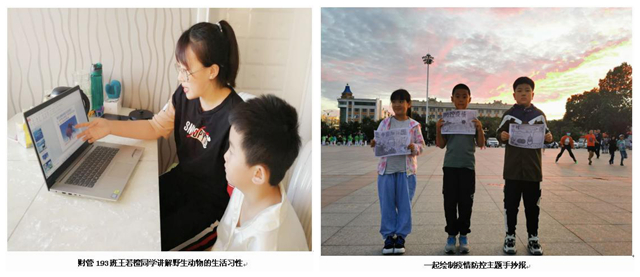 关爱留守儿童,传递幸福温暖。8月17日-21日,管理工程系团总支组织开展了“镜头下的三下乡”专项实践活动。参加实践团队的同学们,分别地社区留守儿童进行英语启蒙、疫情防控知识宣讲和倡导保护野生动物。财管194班张馨月同学与财管193班王若檀同学为社区孩子们详细讲解野生动物的栖息地、群族及生活习性通过图文并茂的PPT孩子们介绍国家重点保护动物;财管192班李家兴同学为社区留守儿童讲如何在家中、户外、公共场所做好疫情防控,现场演示正确佩戴口罩的方法,提醒孩子们一定要戴口罩、勤洗手,认真做好自保护。