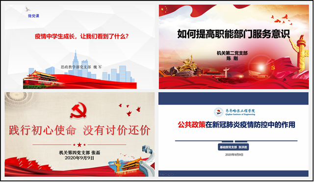 机关第三党支部书记刘晶在《疫情防控做表率 践行初心担使命》的党课中,讲述了常态化疫情防控背景下青年党员的责任与担当,展示了我校学生党员在疫情防控工作中迎难而上、甘于奉献的担当精神和高度的社会责任感。