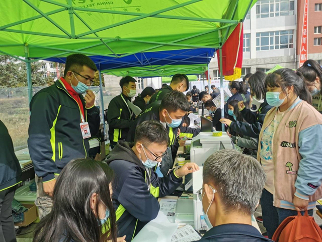 10月34健康与护理系在校园明德广场迎接2020级新生报到,系领导、专业长、辅导员老师以及专业50多名学长及志愿者投入集中报到日的迎新工作之中。