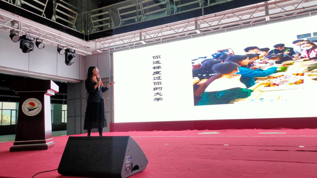 张静主任首先与新生谈到初入大学的自我定位问题,举例说明以不同方式度过大学时光将会收获不同的结果。她以“我们来大学做什么”“毕业后我们要做什么样的人”两问,引导新生思考如何正确开启大学生活方式,“扣好人生的第一颗扣子”。