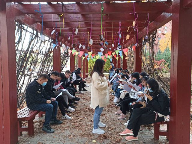10月9日拾光英语竞级社团与信息系学长助学社团共同举办“读”一无二活动,促进同学们英语朗读阅读能力的提高。此次室外晨读活动在校园先觉亭进行,同学们拿着事先准备好的晨读材料进行朗读背诵。在书声朗朗的氛围当中,大家互相交流学习,竞相进行好句好段背诵记忆,为即将到来的英语四六级考试做出准备。