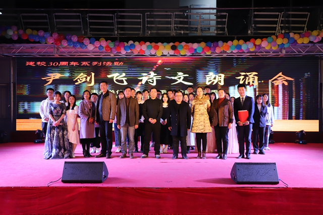11月10日18点,由学校党委宣传部与团委主办,校园调频台、大学生社团联合会承办协办的庆祝建校30周年系列活动之一“尹剑飞诗文朗诵会”在学生活动中心隆重举行。