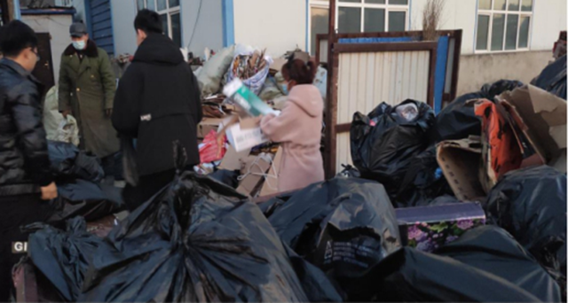 11月10日,机电团总支书记李丽莎老师青工部部长陈东旭、徐振辉五公寓废品回收站点清理垃圾,送往校外垃圾站进行变卖回收。