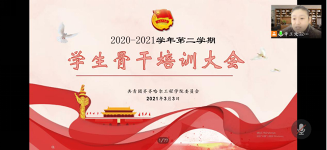 为加强学生干部管理,增强学生干部管理能力,提高工作效率,3月3日下午,校团委利用腾讯会议平台组织召开了2020-2021学年第二学期学生骨干线上培训大会,本次会议由团委书记郭明敬主持,学工处负责人高爱利作主题培训,校团委老师、各系学生工作副主任、团总支书记、学生骨干共230余人参加本次会议。
