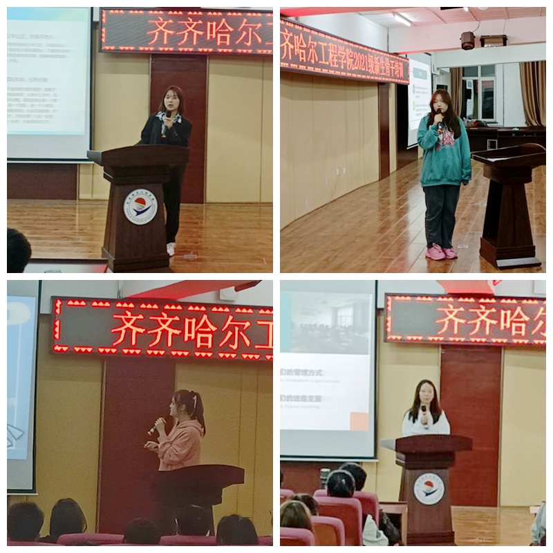 培训会还邀请2020级的电气201班黄敬寒、动画201班张可心、财管201班徐畅、风景20班曹诗笛四位同学,分享管理经验和体会。