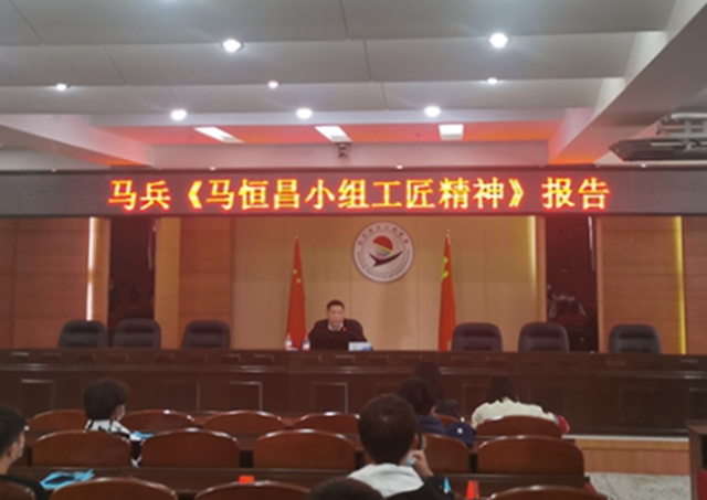 报告会上,马兵为全体学生介绍了马恒昌小组的发展历程、先进事迹,讲述了马恒昌曾组织的爱国主义劳动竞赛、民主管理、技术革新的故事,指出,“马恒昌小组的工匠精神,就是胸怀全局、艰苦奋斗的创业精神;奋发进取、开拓创新的劳模精神;团结协作、无私奉献的团队精神;勇于攻关、绝不放弃的爱国主义精神。他表示作为马恒昌小组的后辈,他和他的同事要学习马恒昌精神,坚守在车间一线岗位,向复杂的工艺挑战,在技术上不断创新。作为从事机械行业的前辈,他祝愿j9在线的学生成为祖国的栋梁之材。