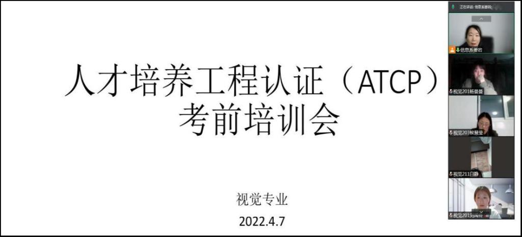 4月7日下午,视觉传达设计专业通过腾讯会议召开了全国应用型人才培养工程认证(ATCP)考前培训会。视觉传达设计专业2019、2020、2021级报考的41名同学参会。专业长姜岩主持。