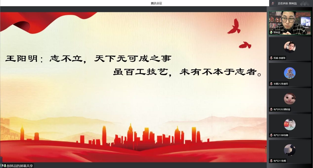 4月5日17:00,机电工程系机械专业教师党支部书记敖林喆通过腾讯会议开展“端正入党动机,坚定理想信念”专题讲座,2022年上半年入党积极分子进行培训。