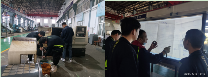在机床大修过程中,机电工程系机械专业多位教师亲临现场教学,带领学生一方面学习机床再制造课程,一方面针对每台机床的故障原因进行透彻的分析。学生全程参与机床的拆卸、失效零件的鉴别及维修、机床的装配、机床的精度检验和负荷试验等一系列的机床大修的全过程。