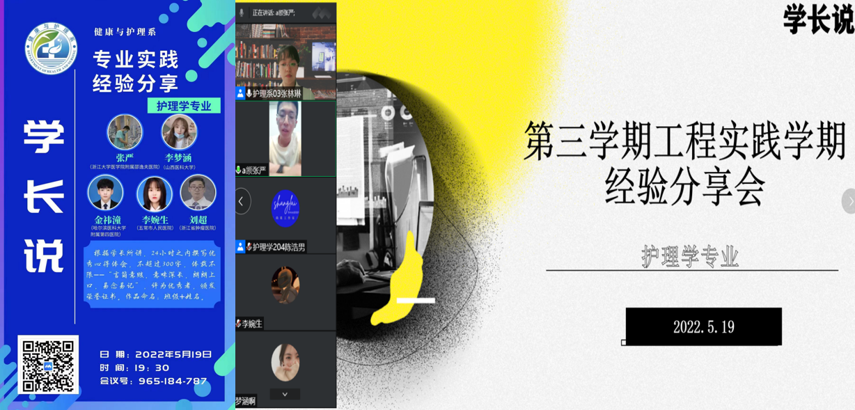 5月19日与20日,护理学专业采用腾讯会议形式,组织召开第三学期“学长说”“企业说”宣讲活动。今年是我校开展第三学期工程实践教学的第二十年,为了让学生充分认识第三学期的必要性和重要性,特举办此活动。