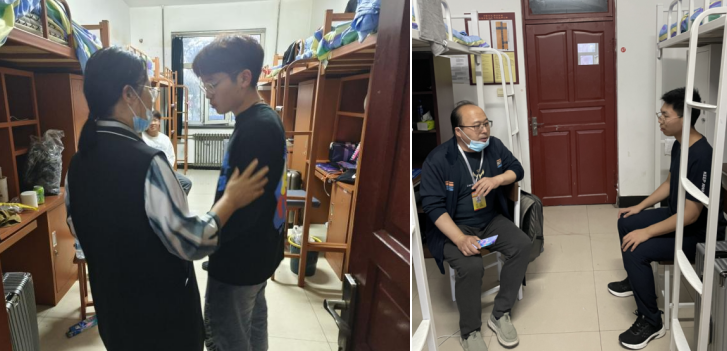 陈主任一行深入学生寝室,了解新生入校后情况,询问新生在入住学校后有哪些意见和建议,在生活、学习上是否存在困难。