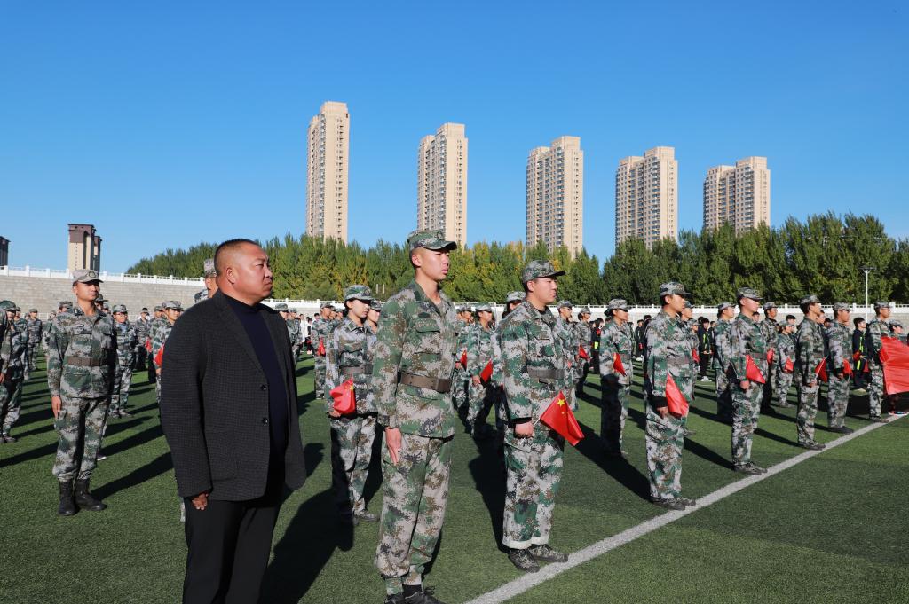 为讴歌伟大祖国73年的光辉历程,激发广大师生爱党、爱国、爱社会主义的热情,10月1日8时,校团委在体育场举办“同心筑梦迎国庆 青春献礼二十大”主题升旗仪式,教官团指导老师孙晓芳、校团委指导教师张云惠及教官团、全体校组织学生骨干,共400余人参加。
