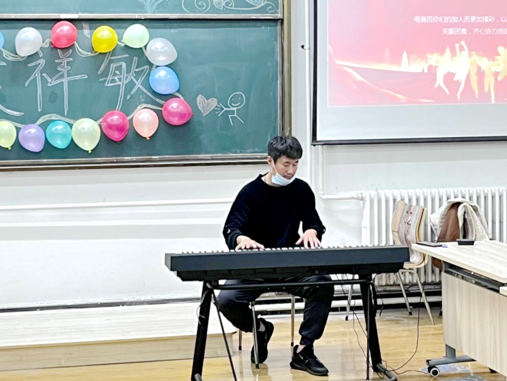 欢迎会上,徐一楠老师代表专业欢迎新生入班,并深情弹奏歌曲,希望新同学尽快适应新环境,紧追步伐,别掉队。