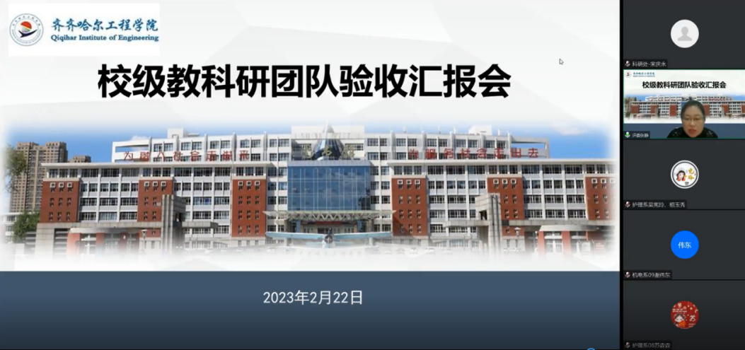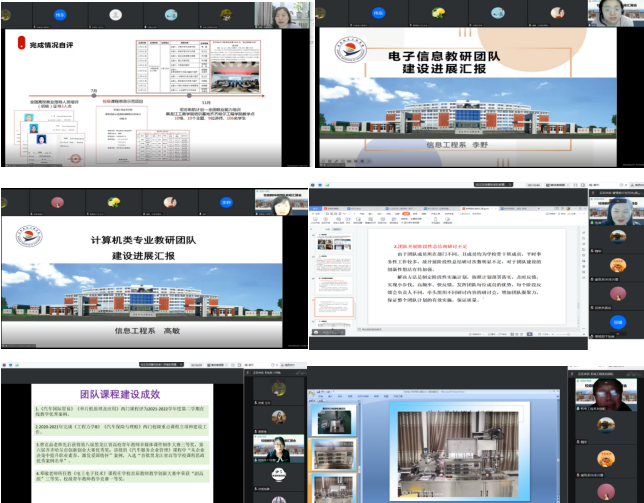 汇报会上,14个团队进行终期验收考核,三个团队进行年度验收考核。各团队对照前期建设目标与任务,从队伍建设、科学研究、课程建设等方面自查自评,展示团队建设情况与特色,真正做到“亮实招、晒成果、谈经验、看效果”。