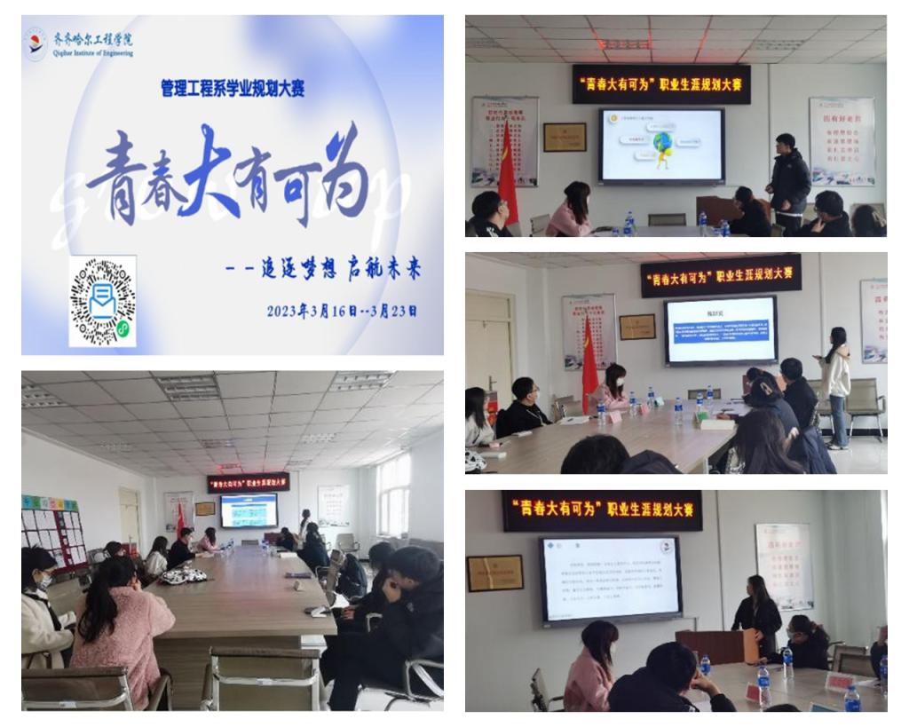 3月23日,管理工程系于号教学区2209会议室开展了“青春大有可为”学业规划大赛决赛。管理工程系各专业、年级历经一周的层层筛选,共计11名学生成功进入决赛。决赛由管理工程系辅导员孝佳骏主持,邀请财管专业负责人于晓晗、互联网金融专业负责人沈斯文、英语专业教师齐锐、电子商务专业及营销专业生涯导师刘丽娜进行评审打分。
