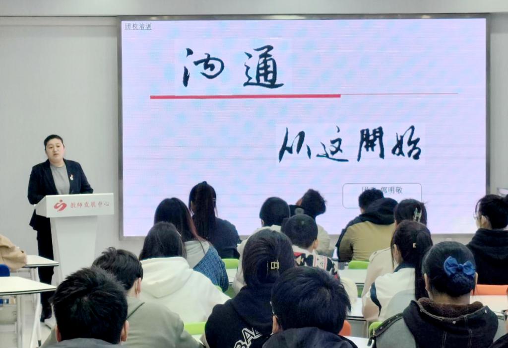 校团委书记郭明敬以《沟通从这开始》为主题进行讲座。郭老师为大家讲述了如何与人沟通。她说,身为学习委员不只是与老师,更多是与同学交流,所以学委在沟通方面应该是具有一定能力的,并为各系学习委员讲解了一些典型例子。