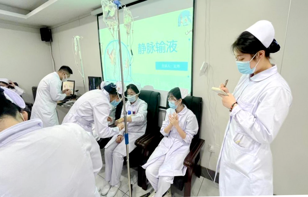 曲彬同学(护理部主任助理)说:“我们用了一周的时间,初步梳理了适合本院的工作流程,明确了我们的优点和现存的问题,接下来我们要建立相关的培训制度和培训内容,要求每天集中一个小时进行静脉输液、留置导尿术和住院护士工作站操作系统的特训来弥补我们的不足。”
