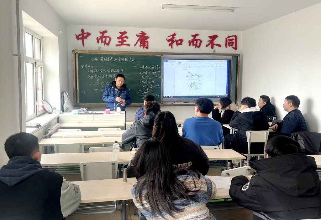 随后,学生动手操作百分表进行数据记录,经过反复测量和修正,最终获得了精确的测量结果。