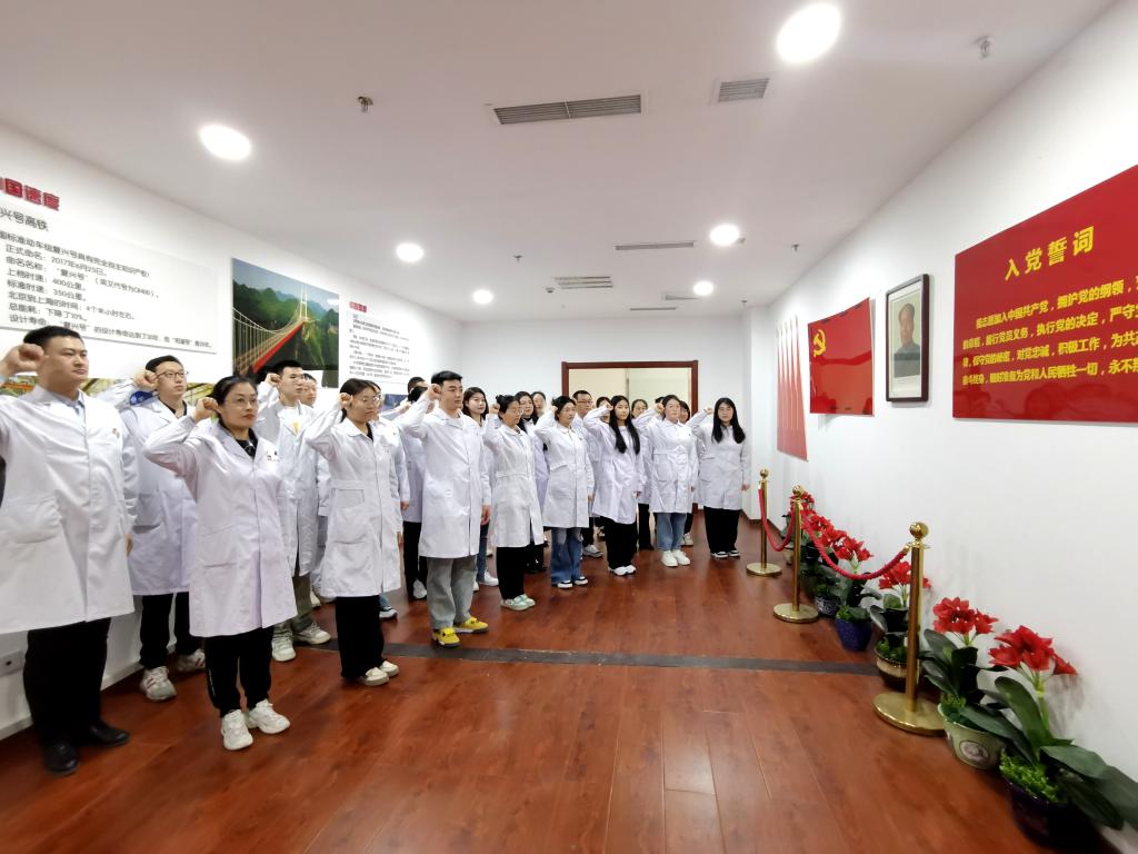 随后,参加活动的党员们面对鲜红的党旗,举起右拳,重温入党誓词,声音激昂、铿锵有力。