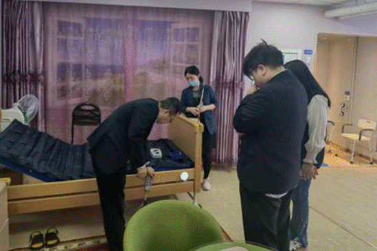 在家居展厅,叶经理展示了互联网、物联网在老人护理服务中的先进应用,通过先进的养老、康复设备设施,让老人有尊严地生活。