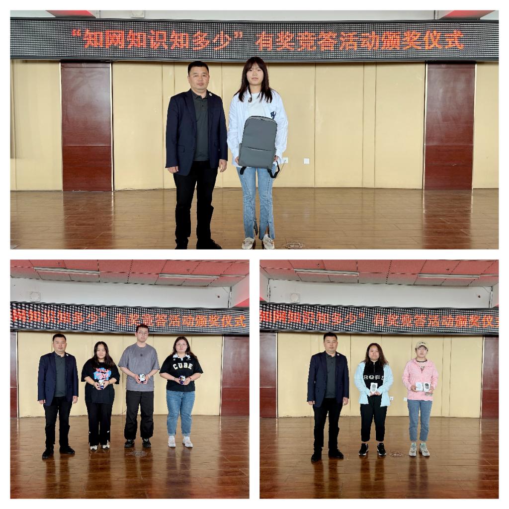 第四项颁发了“知网知识知多少”有奖竞猜活动的一二三等奖,该活动助力学生更好地利用中国知网高效学习和撰写论文。