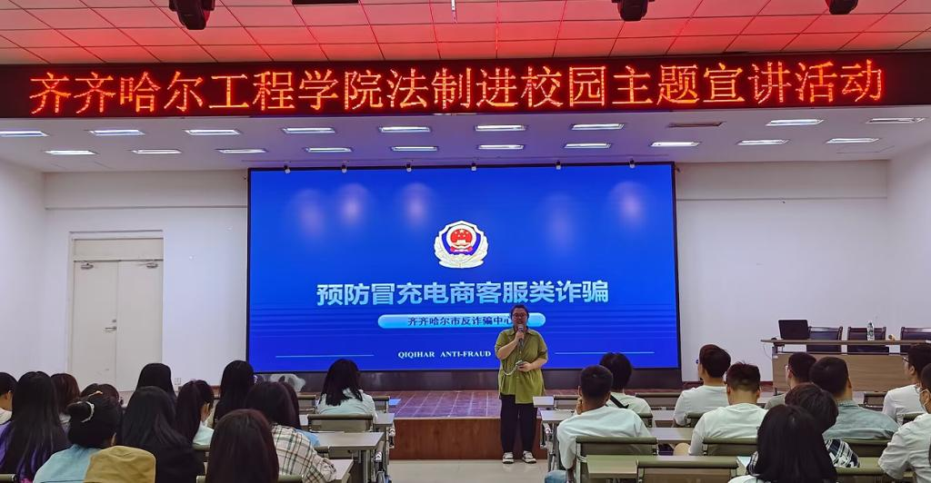 6月2日下午,市反诈骗中心、市公安局高新分局在二号教学区2508教室开展法治进校园主题宣讲活动,管理工程系和建筑工程系200余名学生参加, 管理工程系王丽伟老师主持。