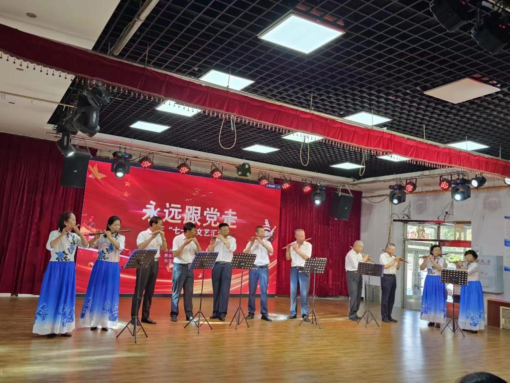 全场演出在东亚老年大学合唱团的《党旗飘飘》《没共产党就没有新中国》歌声中圆满落下帷幕。