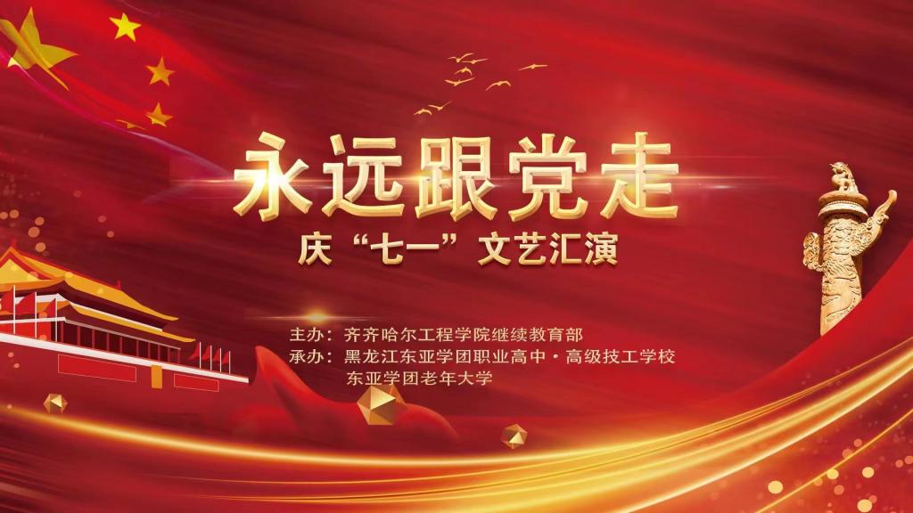 为庆祝中国共产党成立102周年,进一步展现新时代老年大学风貌,6月13日,学校继续教育部主办,东亚学团高级技工学校和东亚老年大学承办的永远跟党走——庆“七一”文艺汇演在北校区举行。继续教育部主任、东亚学团高级技工学校常务副校长孙娱芯和副校长高鹏等领导出席汇演活动。