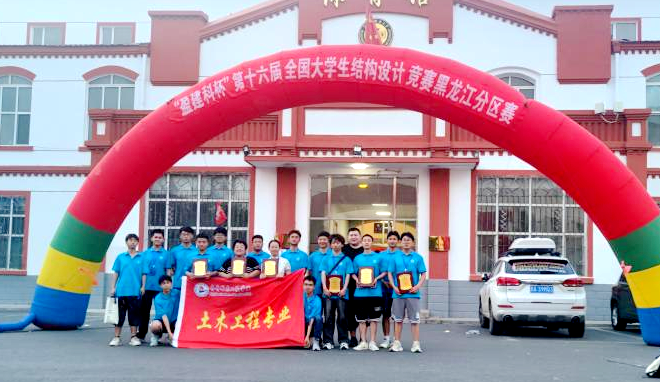 6月23日至25日,为期三天的2023年“盈建科杯”第十六届结构设计竞赛黑龙江省分区赛在黑龙江科技大学闭幕。我校五组参赛队伍共获一等奖一项,二等奖两项,三等奖一项,团体一等奖一项,土木214班梁顺贵、王宏伟、王泽念同学组成的东北铁男队在全场105组脱颖而出,荣获全赛唯一一项“最佳创意奖”,本次参赛队伍取得的优异成绩为近年最佳成绩。