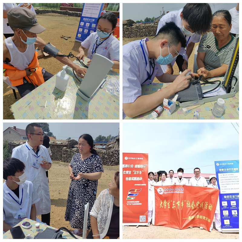 近日,健康与护理系党总支书记张林琳、教师支部书记姜佳与思政教学部常立凯、护理系师生共12人组成的志愿服务队走进齐齐哈尔市龙江县红胜村开展“健康服务进乡村,促进振兴助三农”义诊志愿服务活动。