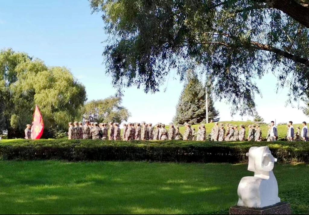 欲作金精美玉的品格,必从烈火中锻来。烈日暴晒,草木碧影。虽然同学们后背滚烫,甚至仅手背上的皮肤也开始微微发红,但大家表示,这才是军训该有的样子。