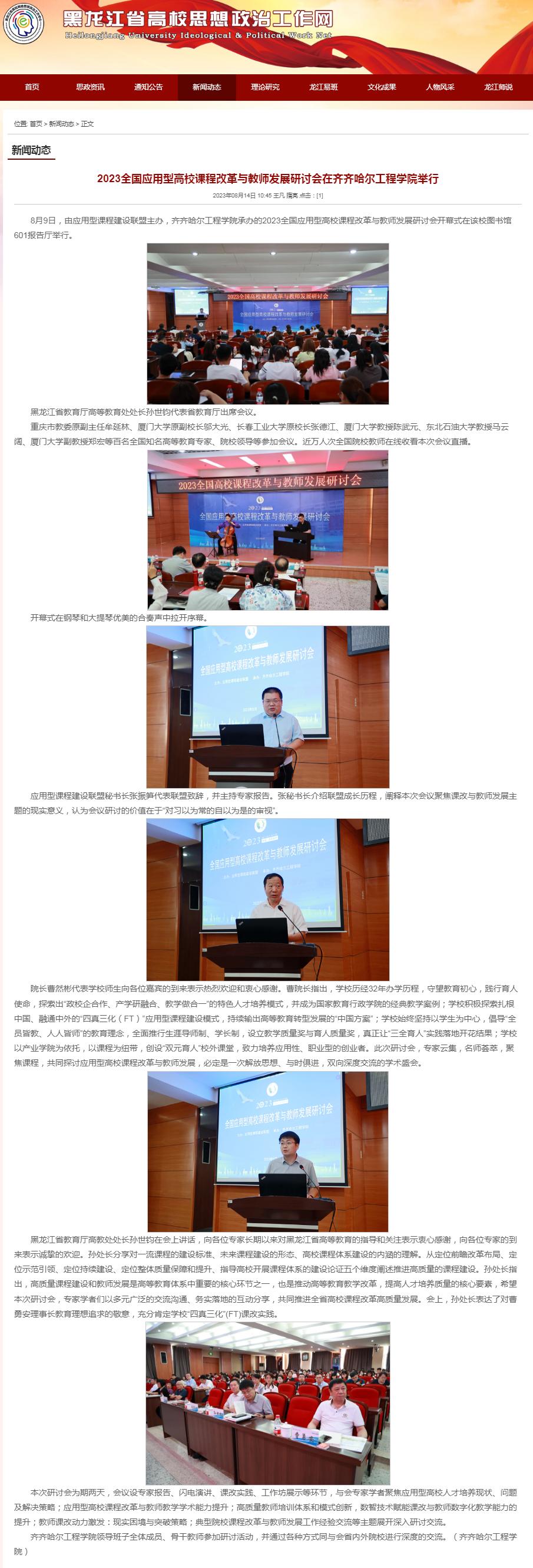 黑龙江省高校思想政治工作网:2023全国应用型高校课程改革与教师发展研讨会在j9在线举行