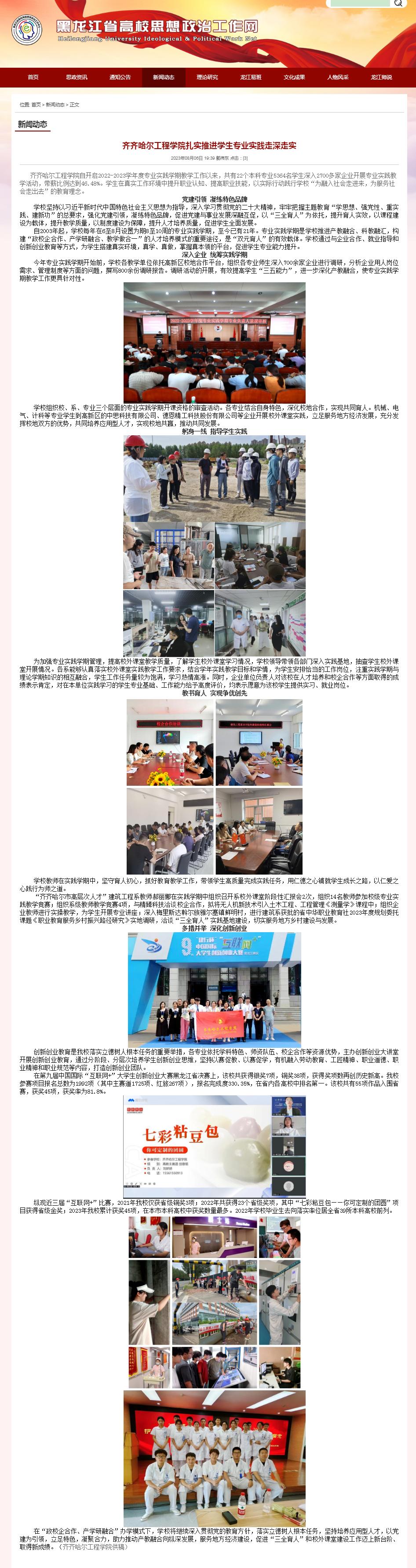 黑龙江省高校思想政治工作网:j9在线扎实推进学生专业实践走深走实