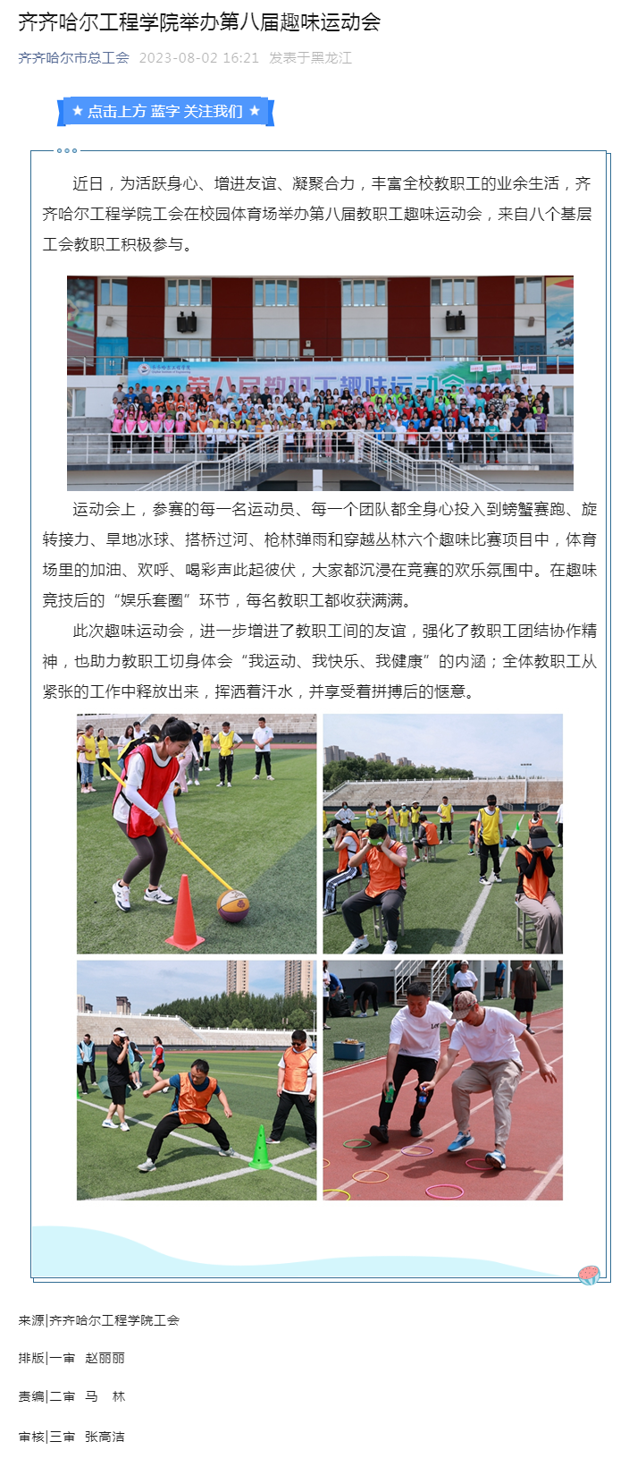 齐齐哈尔市总工会公众号:j9在线举办第八届趣味运动会