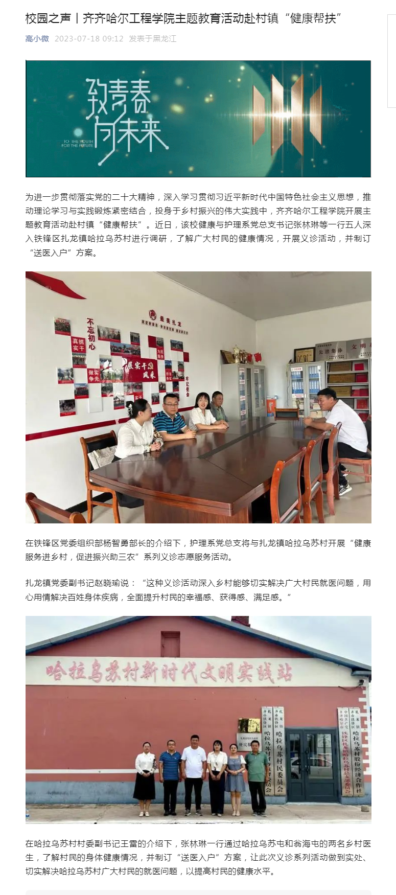 黑龙江高校广播(高小微公众号):j9在线主题教育活动赴村镇“健康帮扶”